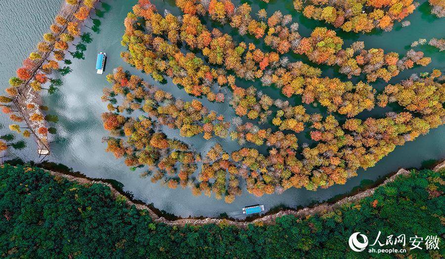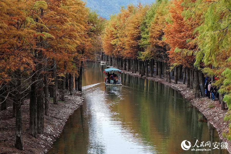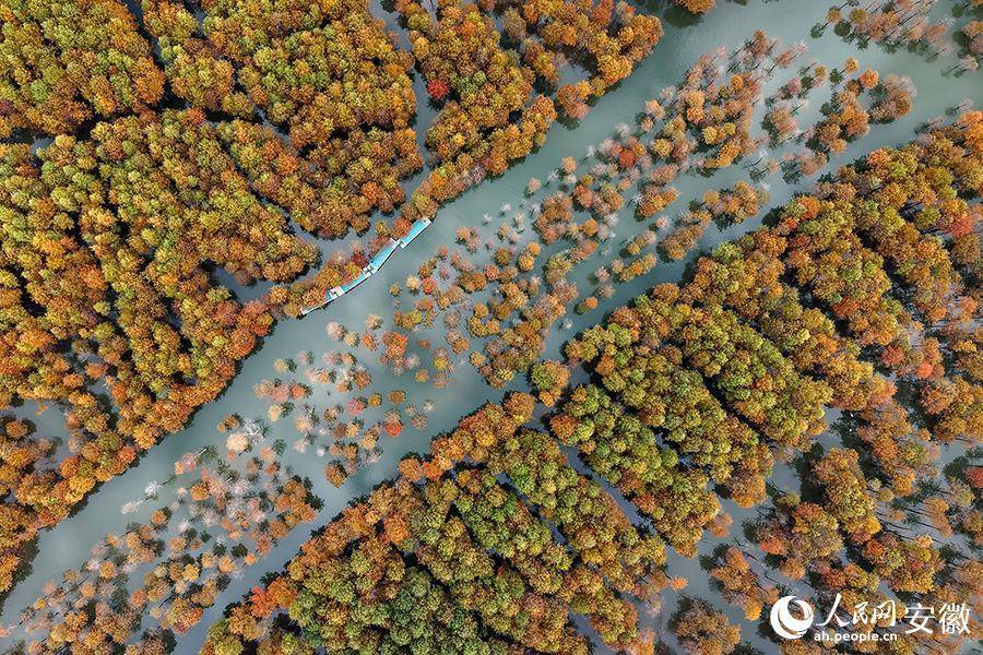 宁国红杉林景色如画。人民网记者 苗子健摄人民网宁国11月14日电 (记者苗子健)时值初冬,安徽省宁国市方塘乡的2000余亩落羽杉逐渐变红,从空中俯瞰,仿佛大自然打翻的调色盘,五彩斑斓。游客泛舟林间,如在画中游。