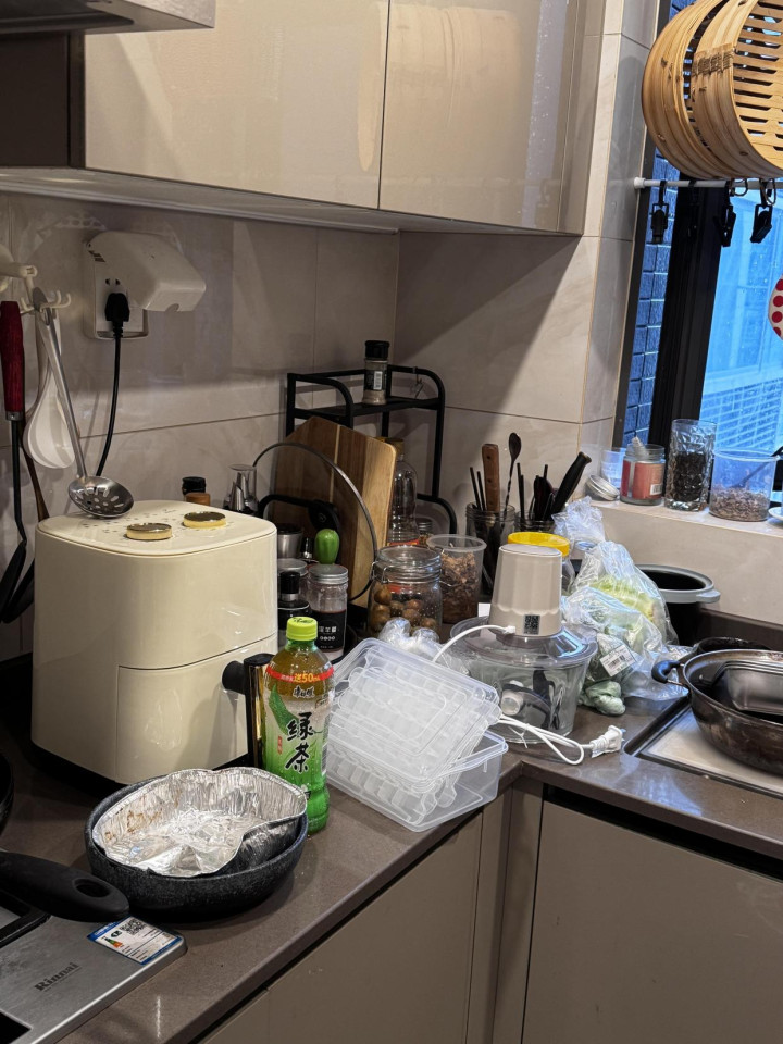 厨房本身通风换气就容易受油烟影响,杂物堆积只会让厨房更脏,油烟味更难散出去,做完饭浑身都带着味。