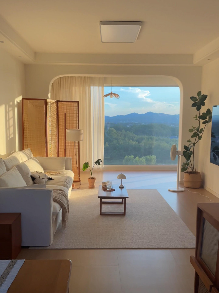 这面空白墙面就像视觉“呼吸口”,每天被手机、电视里的信息轰炸,看到这样一片干净的墙面,眼睛和思绪都能跟着放松下来,整个人也会莫名觉得轻快不少。