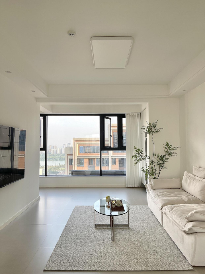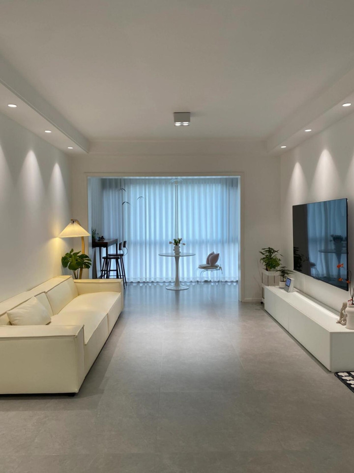 信息爆炸的时代,最美的艺术就是留白,尤其是客厅,留出一面白墙,不做背景墙,不挂装饰画、简单刷上喜欢的乳胶漆就好。