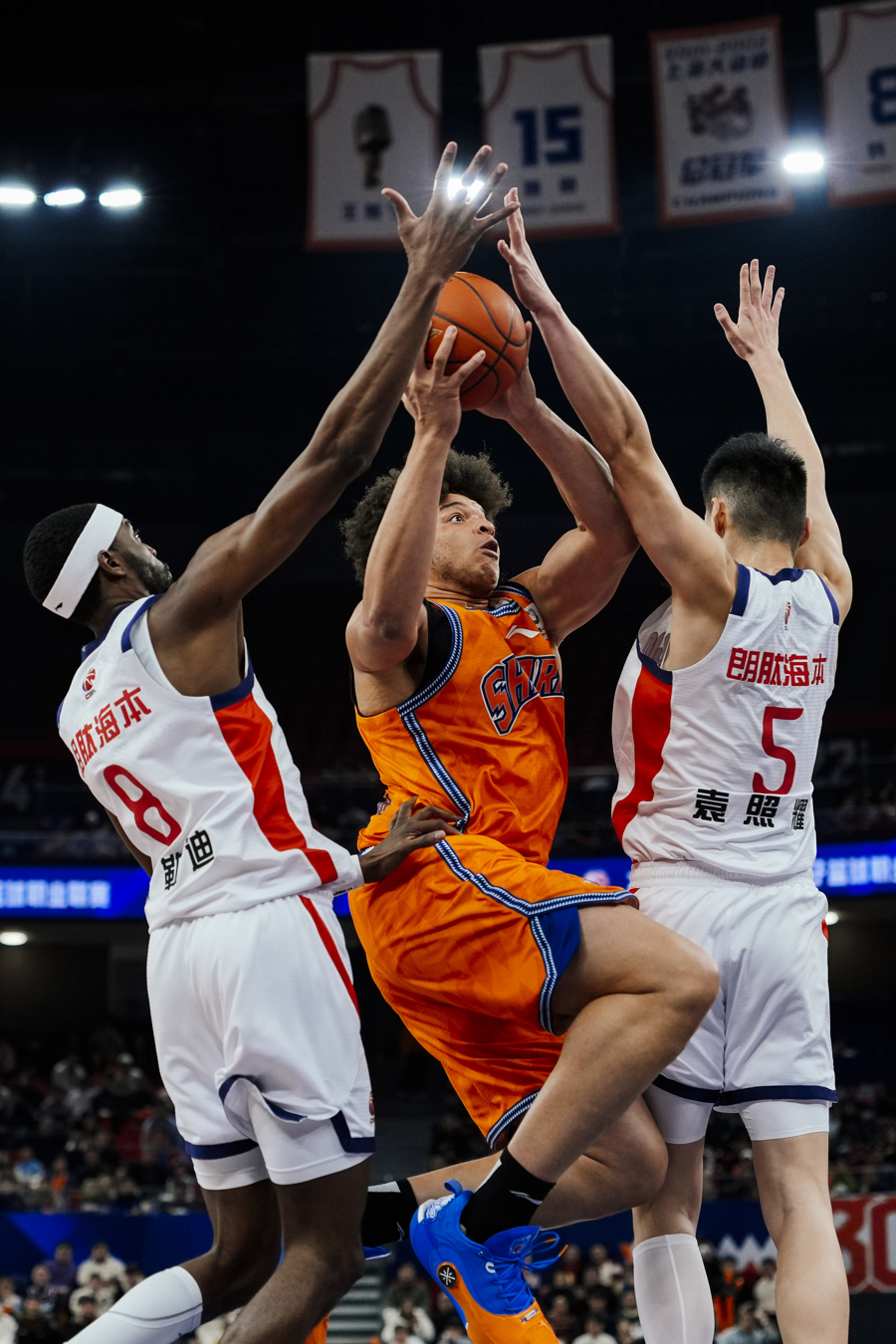 1月27日,CBA常规赛第20轮,上海久事男篮主场迎战广州朗肽海本,以95:78力克对手。